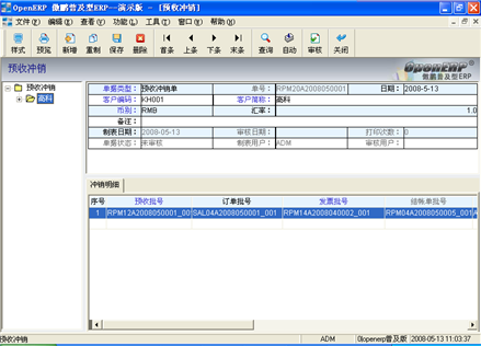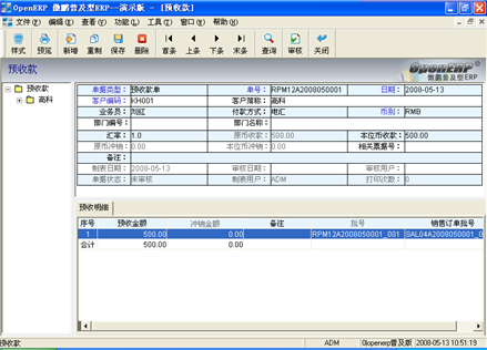說明(míng):1.“預收款”的數(shù)據來(lái)源是文件櫃“銷售訂單轉預收款”抛轉來(lái)的資料,也可(kě)手工新增單據