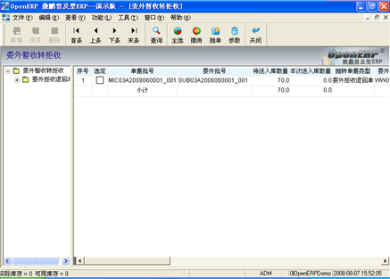 具體(tǐ)操作(zuò):選定需要轉成委外拒收退回單的記錄後,點擊菜單項“功能/抛出”或點擊相應圖标,将選定的暫收批号轉成委外拒收退回單