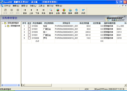 具體(tǐ)操作(zuò):選定需要轉成采購入庫單的記錄後,點擊菜單項“功能/抛出”或點擊相應圖标,将選定的暫收批号轉成采購入庫單