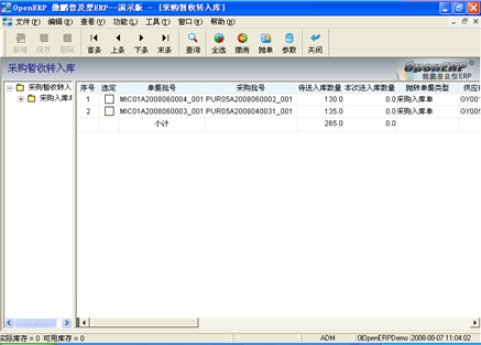 選 擇:一張采購暫收單有(yǒu)多(duō)個(gè)批号,可(kě)以隻選定某些(xiē)個(gè)批号轉成采購入庫單,若要全部選定,可(kě)以點擊菜單項“功能/全選”或點擊相應圖标,将所有(yǒu)項目全選,也可(kě)以點擊菜單項“功能/撤銷”或點擊相應圖标,将選中項目撤銷