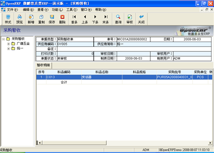 登錄系統後,在左邊的模塊區(qū)中,找到“庫存管理(lǐ)/暫收處理(lǐ) /采購暫收”,進入“采購暫收”窗口(見圖6),此文件櫃可(kě)以手動新建采購暫收單據(注意:必須有(yǒu)采購訂單),也可(kě)對由采購訂單生(shēng)成的采購暫收單進行(xíng)查看、修改,然後将單據審核