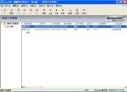 功能:點選中需要重新計(jì)算(suàn)的訂單号,點菜單上(shàng)的“計(jì)算(suàn)”功能,系統就會(huì)重新計(jì)算(suàn)出最新數(shù)據