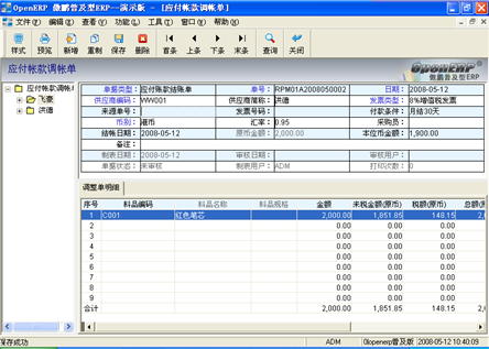 登錄系統後,在左邊的模塊區(qū)中,找到“應付管理(lǐ)/應付帳款生(shēng)成/應付帳款調賬單”後雙擊它,進入“應付帳款調賬單”窗口(見圖5),此文件櫃可(kě)以新建應付帳款調賬單,如需審核單據,則需要到應付賬款結賬單文件櫃中審核此單據,本文件櫃隻提供新增的功能