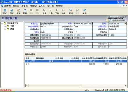 登錄系統後,在左邊的模塊區(qū)中,找到“應付管理(lǐ)/應付帳款生(shēng)成/應付帳款結帳單”後雙擊它,進入“應付帳款結帳單”窗口(見圖4),此文件櫃可(kě)以新建應付帳款結帳單,也可(kě)對由采購入庫單生(shēng)成的應付帳款結帳單進行(xíng)查看、修改,然後将單據審核